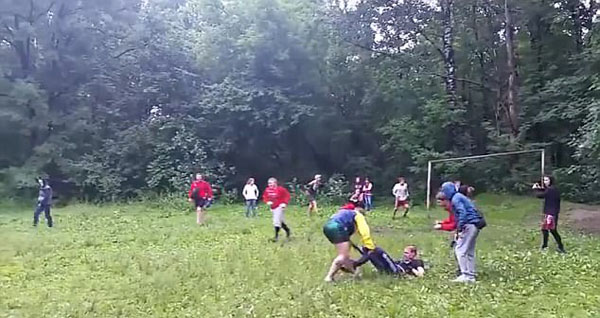 视频显示,培训在莫斯科一个森林的空地里举行。这伙人分成了两队,他们个个都戴着拳击手套和护齿。培训开始后,只见一名男子人飞速奔向另一队中的一名男子,腾空飞起一脚将对方踹倒,拉开了两队打架斗殴的序幕。瞬间,所有人都撕打在一起,场面甚是混乱。在打斗期间,还有老队员在一旁指挥新队员如何击打目标。