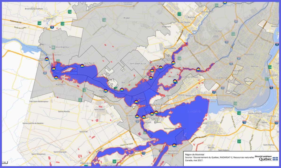 蒙特利尔(Montreal)和拉瓦勒(Laval)在内的几个城市已经宣布了紧急状态,目前为止,有146个市镇被淹没,1520人被迫离开家园。