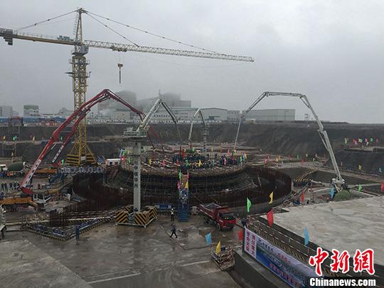 资料图:华龙一号示范机组工程正在浇筑混凝土。 李敏军 摄