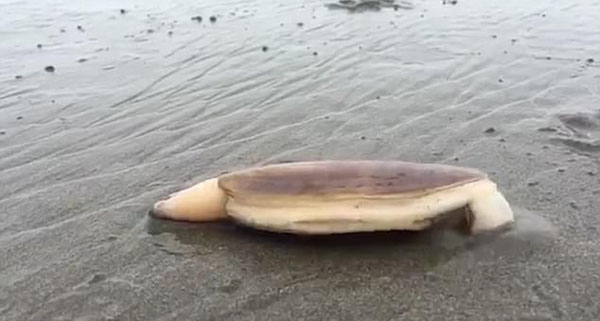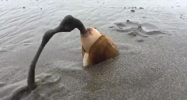 【环球网综合报道】据英国《每日邮报》5月10日报道,近日,有人在美国俄勒冈州北部海岸捕捉到了太平洋竹蛏的“排泄”画面。这种动物会在沙滩挖坑捕食,通过壳内肌肉的收缩帮助它们深入沙子,然后再用虹吸管将沙子排出体外。