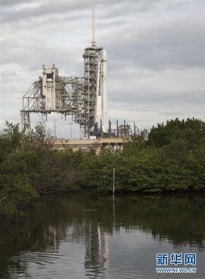 6月3日,在美国佛罗里达州卡纳维拉尔角的肯尼迪航天中心,“猎鹰9”火箭准备发射。
