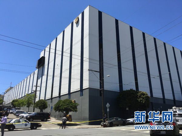 这是6月14日在美国旧金山拍摄的发生枪击事件的美国联合包裹运送服务公司一处设施。新华社记者 马丹 摄
