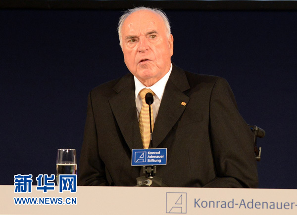 这是德国前总理赫尔穆特·科尔在首都柏林的德意志历史博物馆举行的活动上发言的资料照片(2012年9月27日摄)。新华社记者 马宁 摄