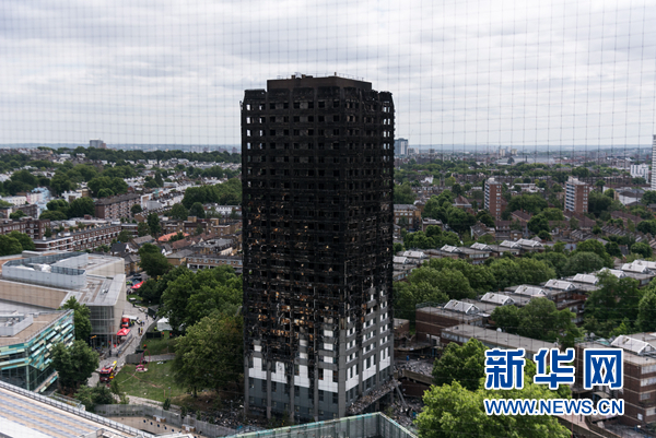 这是在英国伦敦拍摄的发生火灾的高层居民楼。新华社发(雷伊·唐 摄)