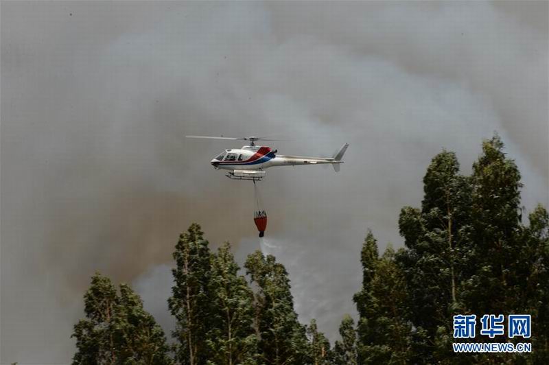 6月18日,一架直升机在葡萄牙中部大佩德罗冈地区参与扑救森林大火。新华社记者张立云摄