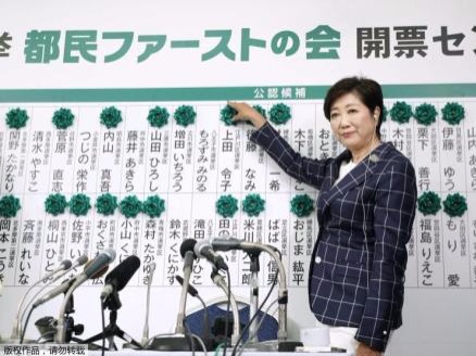 日本东京都议会选举结果揭晓,小池百合子率领的“都民第一会”一举获得55个议席