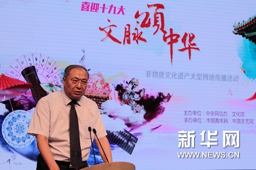 9月15日,由中央网信办和中国文化部共同主办的“喜迎十九大·文脉颂中华”非物质文化遗产大型网络传播活动在京启动。该活动为期两周,是在全国范围内大规模开展的非遗网络传播活动。它既是我国作为联合国教科文组织《保护非物质文化遗产公约》缔约国,向国际社会郑重承诺合理、有效地保护非物质文化遗产的一次公众实践活动,也是《中华人民共和国非物质文化遗产法》实施五年来在非遗领域展开的又一次积极探索,因而具有非常重要的意义。