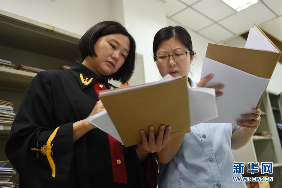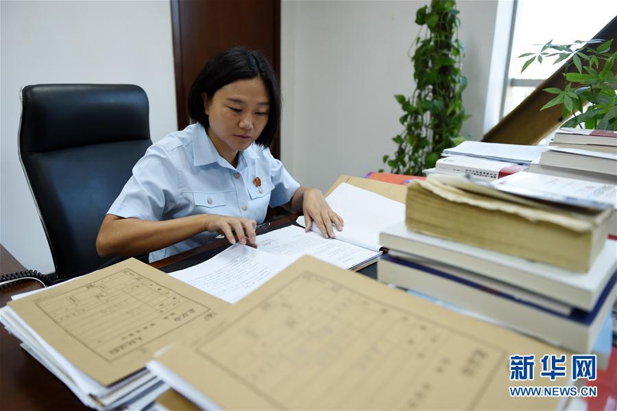 9月28日,北京市朝阳区人民法院奥运村人民法庭庭长刘黎在办公室内查看卷宗。 新华社记者鞠焕宗 摄