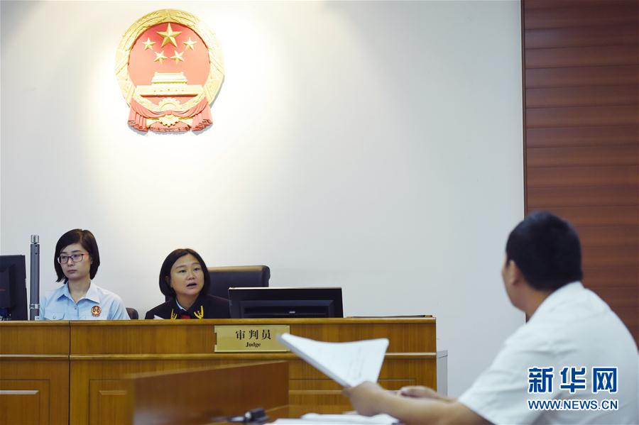 9月28日,北京市朝阳区人民法院奥运村人民法庭庭长刘黎(中)在庭上询问当事人。新华社记者鞠焕宗 摄