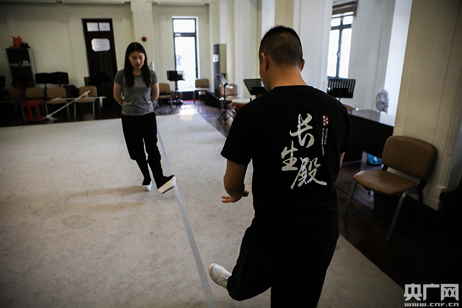 昆剧演员在舞台上穿的厚底靴,他们要在脚踩5厘米左右高度靴子的状态下完成各种台步及动作,台上一分钟,台下十年功。没有长年累月的刻苦训练是无法完成的。