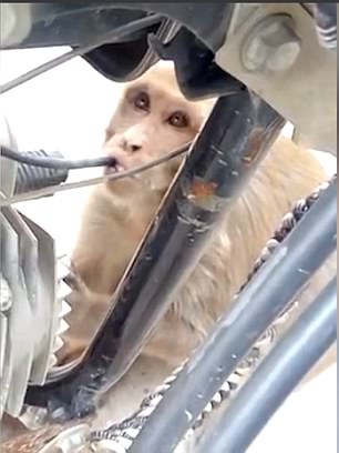 【环球网综合报道】据英国《每日邮报》11月8日报道,近日,印度哈里亚纳邦东部城市巴尼伯德的许多摩托车主发现自己摩托车里的汽油经常会莫名其妙地耗尽,最后安装视频监控后发现罪魁祸首竟然是一只喜欢偷喝汽油的猴子。