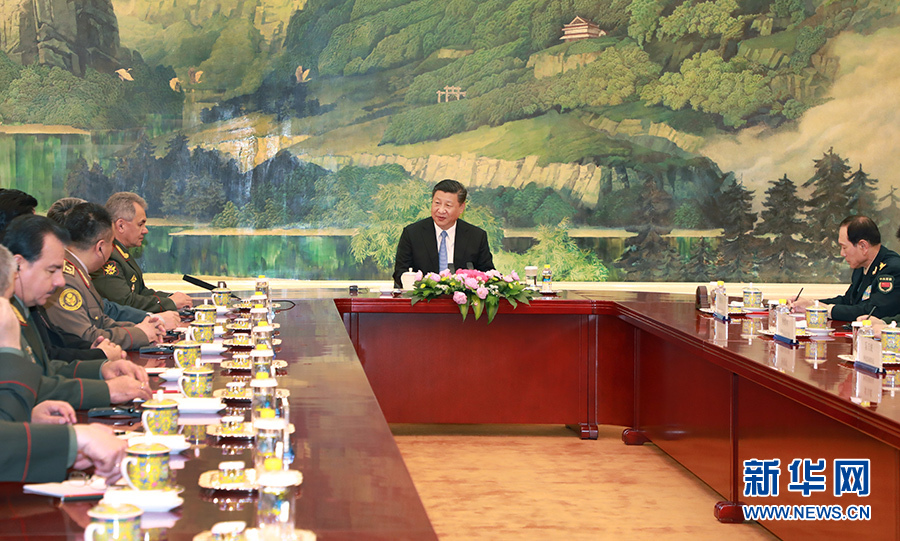 4月23日,国家主席习近平在北京人民大会堂集体会见上海合作组织成员国国防部长。 新华社记者 李刚 摄