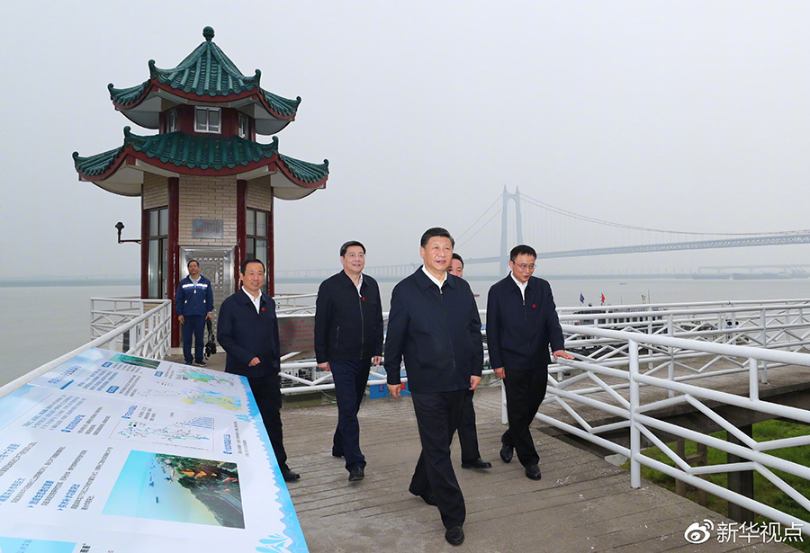 25日下午,习近平来到湖南岳阳,考察了位于长江沿岸的岳阳市君山华龙码头。