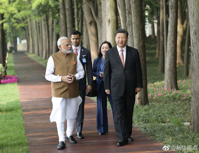 新华网北京4月28日电 28日上午,国家主席习近平同印度总理莫迪在烟波浩渺、风景秀丽的武汉东湖边散步。习近平和莫迪在轻松友好的气氛中极目楚天、闲庭信步,就中印关系和共同关心的国际和地区问题交换意见。(文字:李忠发 摄影:庞兴雷 据新华社“新华视点”微博报道)