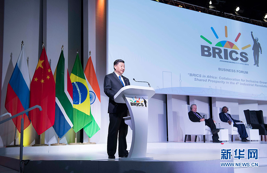 7月25日,国家主席习近平应邀出席在南非约翰内斯堡举行的金砖国家工商论坛,并发表题为《顺应时代潮流 实现共同发展》的重要讲话。 新华社记者 王晔 摄