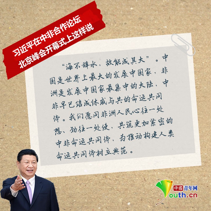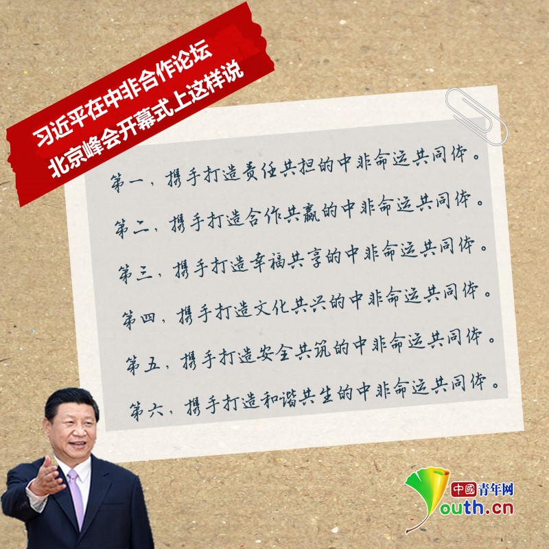 中非携手,共同打造责任共担、合作共赢、幸福共享、文化共兴、安全共筑、和谐共生的中非命运共同体,重点实施好产业促进、设施联通、贸易便利、绿色发展、能力建设、健康卫生、人文交流、和平安全“八大行动”……中国青年网“学习者”特此梳理习近平主席主旨讲话,同读者一同学习体悟讲话中对于中非合作的新理念、新主张、新行动、新举措。