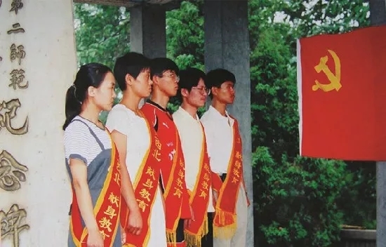 图为2000年部分毕业生在赴且末出发前在七六烈士纪念亭宣誓入党。新华网
