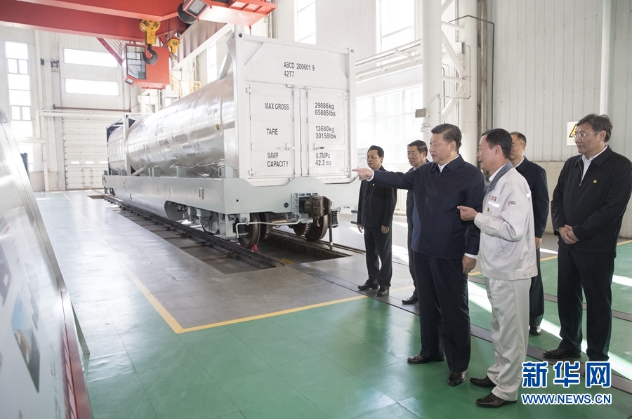 9月26日,中共中央总书记、国家主席、中央军委主席习近平在黑龙江齐齐哈尔考察。这是习近平在中车齐车集团有限公司铁路货车试验研究中心考察。 新华社记者 王晔 摄