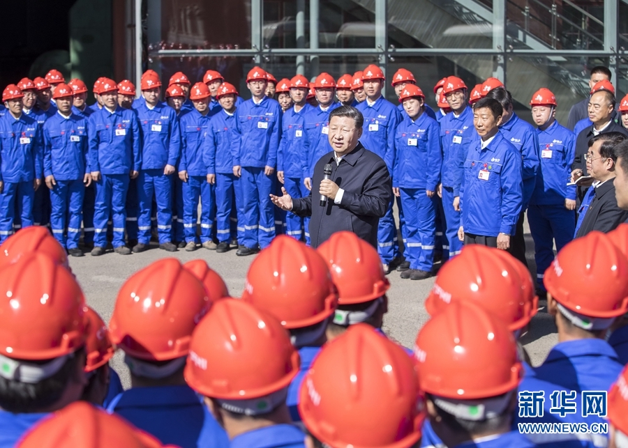 9月26日,中共中央总书记、国家主席、中央军委主席习近平在黑龙江齐齐哈尔考察。这是习近平在中国一重集团与工人亲切交流。 新华社记者 王晔 摄