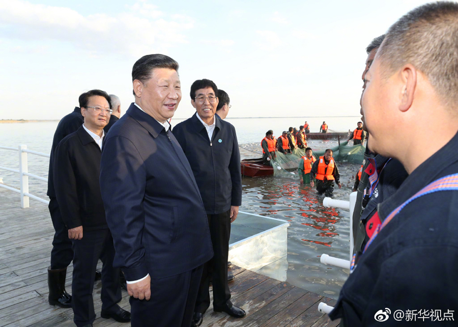 习近平总书记26日从齐齐哈尔赶赴吉林省松原市,到查干湖了解生态保护情况。他乘船沿途察看水域保护和污染防治状况。登上捕鱼浮桥,热火朝天的捕鱼画面跃入眼帘。粼粼波光,网收鱼跃。习近平同渔场职工们亲切交谈,他强调,绿水青山、冰天雪地都是金山银山。保护生态和发展生态旅游相得益彰,这条路要扎实走下去。他祝愿大家“年年有鱼,年年有余”。