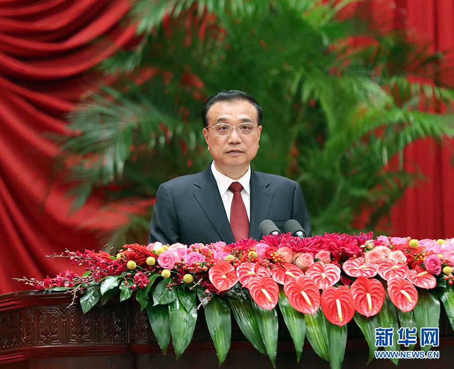 李克强最后说,伟大事业需要全体中国人民共同奋斗、克难攻坚。让我们更加紧密团结在以习近平同志为核心的党中央周围,高举中国特色社会主义伟大旗帜,脚踏实地,开拓创新,为实现“两个一百年”奋斗目标、建设富强民主文明和谐美丽的社会主义现代化国家、实现中华民族伟大复兴中国梦而不懈努力!