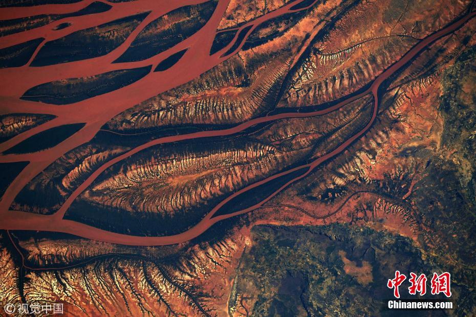 7月11日,正在国际空间站工作的NASA宇航员Ricky Arnold在马达加斯加上空250英里处轨道上拍摄了一张照片,照片中本应郁郁葱葱已生息千年的林地变得斑驳稀少,取而代之的是大片裸露在外的红色土地,就像渗出血液,看上去触目惊心。图片来源:视觉中国
