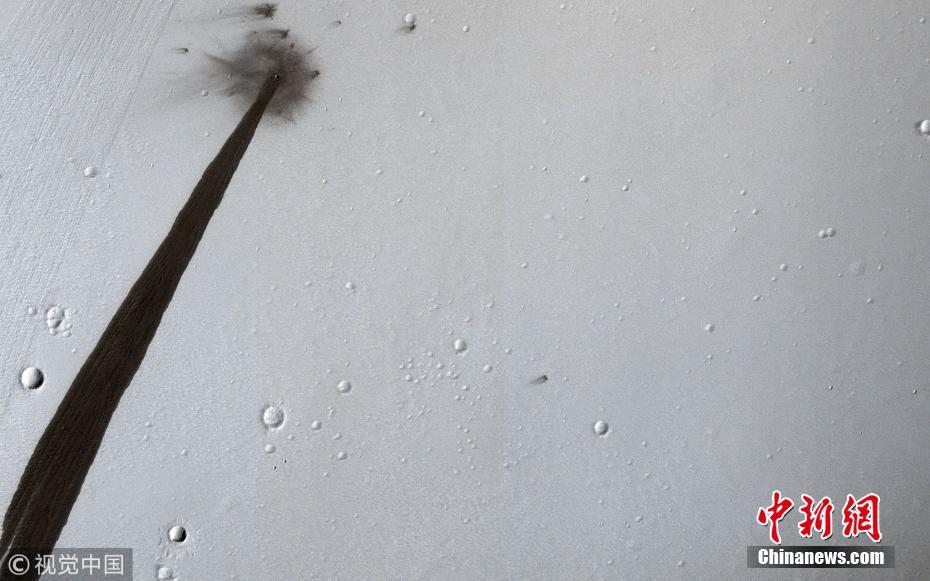 美国宇航局发布了一张照片,照片显示了陨石撞击火星表面的后果。这张照片是由火星勘测轨道飞行器拍摄的,从这张照片上,可以看到陨石撞击火星后留下的一条烧焦的痕迹。美国航空航天局表示,这种条纹实际上是由撞击引起的雪崩造成的。美国宇航局在一份新闻稿中解释说:“陨石坑本身只有5米宽,但它的长度达到1千米。当干燥的沙尘落在布满灰尘的火星山丘后,就会形成斜坡条纹。在条纹的左边,你甚至可以看到一个旧的雪崩的残骸。”据美国宇航局的专家称,这张照片中的雪崩条纹发生在十年之内,所以这个条纹是新形成的。图片来源:视觉中国