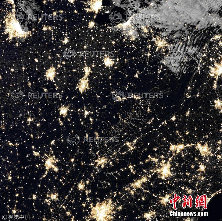 2018年10月24日,索米国家极地轨道伙伴卫星(Suomi NPP)上搭载的可见红外成像辐射计套件(VIIRS),捕捉了这张美国西弗吉尼亚山区的照片。这张夜间图像拍摄于凌晨2点左右,当时,雾气已经在坎伯兰山脉的许多山谷间弥漫开来。图片来源:视觉中国