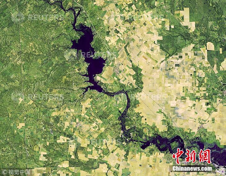 NASA的陆地卫星8号(Landsat8)于11月1日拍摄的图像,因飓风“威拉”(Willa)带来的过量降雨导致德克萨斯州的埃西斯河洪水泛滥。图片来源:视觉中国