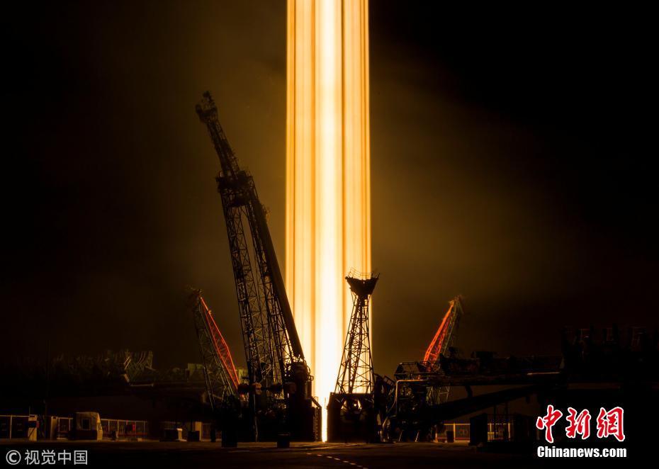 当地时间2018年3月21日,哈萨克斯坦拜科努尔,“联盟MS-08”飞船发射升空。图片来源:视觉中国