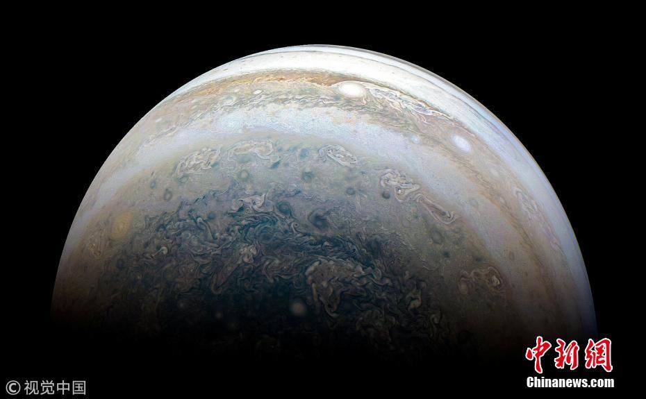 NASA发布的一张朱诺号探测器拍摄的木星图像。图片来源:视觉中国