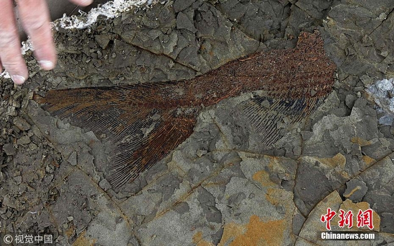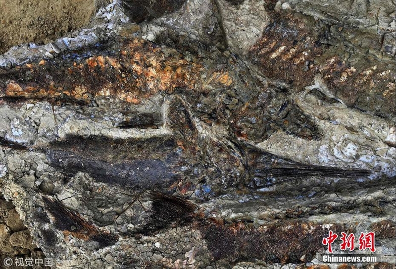 当地时间2019年3月29日,美国北达科他州,当地发现一堆缠结成团的铰接式鱼类化石。该遗址的历史可以追溯到6600万年前。图片来源:视觉中国