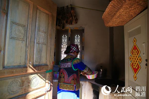 吉好也求的妻子正在厨房里忙碌。人民网朱虹摄