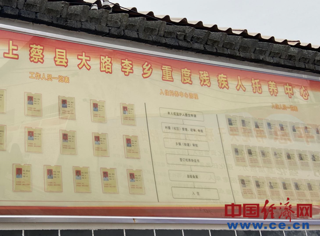 图为大路李乡贫困家庭重度残疾人托养中心展示栏。 经济日报-中国经济网 梁木 摄