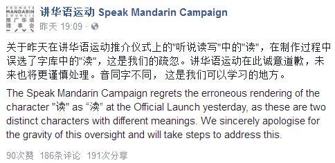 推广华语理事会11日发文道歉、承认疏失,并指出理事会是在制作过程中误选了电脑字库中的“渎”字。