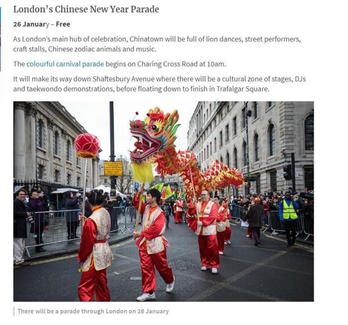 英国伦敦将于1月26日举行舞龙舞狮的街头表演。来源:英国metro都市地铁报纸网站报道截图