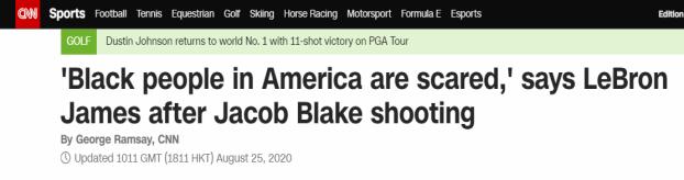 CNN:“美国的黑人很害怕”勒布朗·詹姆斯在雅各布·布雷克被枪击伤后发声