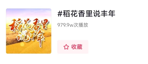 抖音话题#稻花香里说丰年#播放量共979.9万次;话题#丰收在吉#播放量共55.1万次。