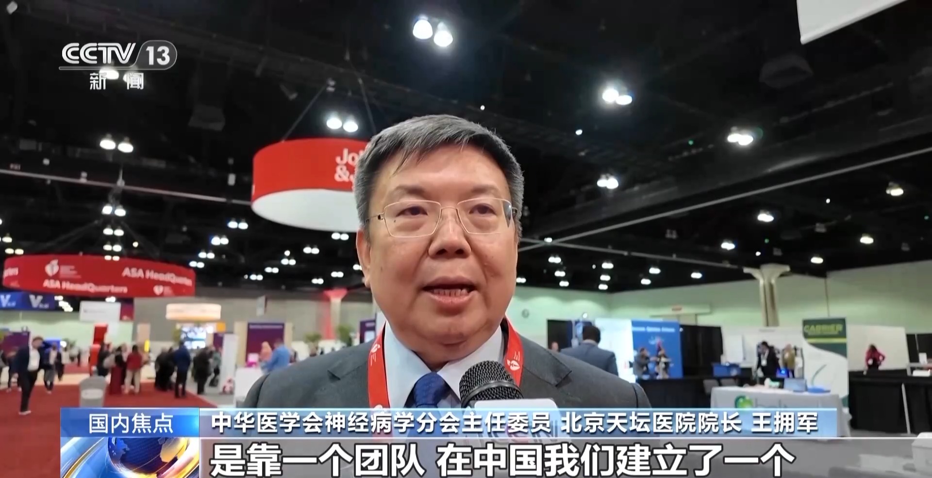 中华医学会神经病学分会主任委员 北京天坛医院院长 王拥军:因为临床研究不是靠一个人,是靠一个团队,在中国,我们建立了一个中国的临床研究网络,大概2400家医院,这两千多家医院水平都要好,才能做出好的研究。这个奖项说明,至少在这个领域,我们是领跑国际的。