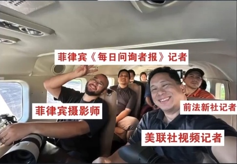 在现场画面中,可以明显地看到,舷窗里面的人员都是专门过来拍摄的记者,还在社交平台上发了自拍。其中几位在菲律宾故意在南海碰瓷中方海警船时,就曾被菲方带上船。