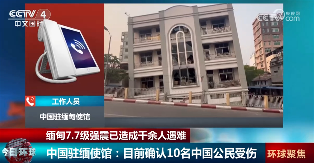 强震发生后,在缅中国公民目前安全状况如何?总台记者就此向中国驻缅甸大使馆了解情况。使馆工作人员表示,目前已确认有10名中国公民在地震中受伤。使馆还将继续摸排受灾情况,全力协调后续救援。